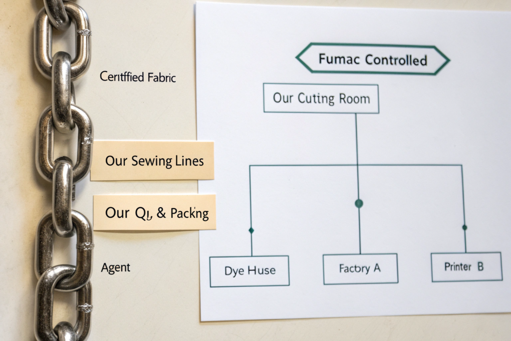 In a fragmented supply chain, every middleman adds cost and opacity. A fabric supplier, a dye house, a trim supplier, a factory, and an exporter all need their margin. This lengthens the journey and multiplies the points where cost—or safety—can be compromised.