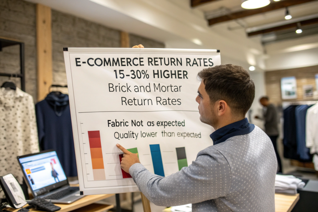 E-commerce return rates are typically 15-30% higher than brick-and-mortar return rates for apparel. And the reasons cited for e-commerce returns are disproportionately about "fabric not as expected" or "quality lower than expected." This means fabric choice has an amplified impact on e-commerce profitability.