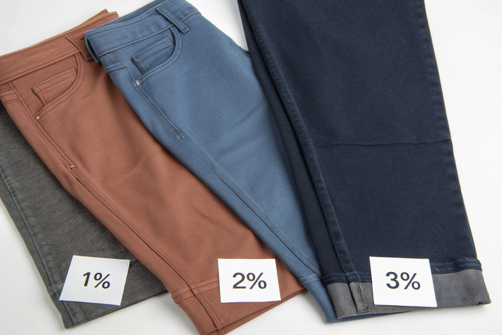 What is the difference between 1%, 2%, and 3% elastane in denim?