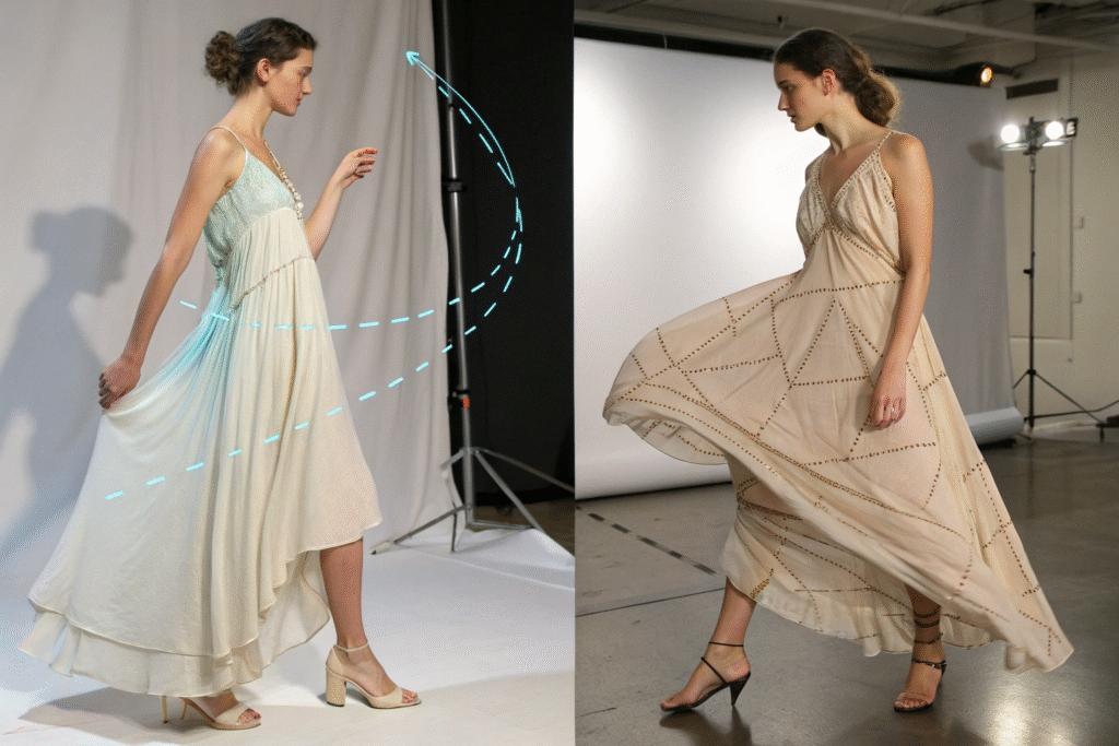 Modern textile engineering has narrowed the drape gap significantly. High-quality polyester chiffon now achieves 80-90% of silk's fluidity while offering practical advantages. For designs requiring structural integrity within the drape—like multi-layer constructions, weighted hems, or integrated support—polyester often performs better because it maintains its character under stress.