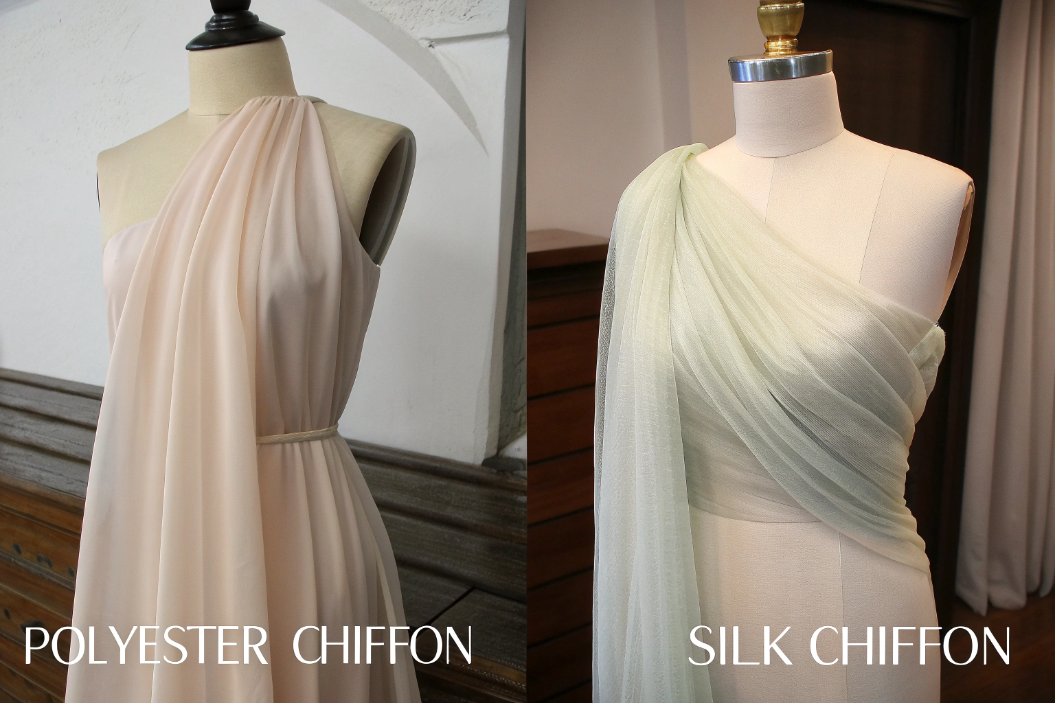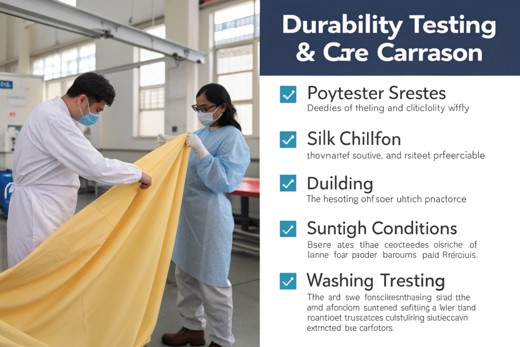 Silk chiffon demands specialized dry cleaning, careful storage, and minimal exposure to elements like perfume or perspiration. Polyester chiffon typically handles gentle machine washing, easy ironing, and straightforward storage. This difference affects everything from customer satisfaction to return rates and brand perception.