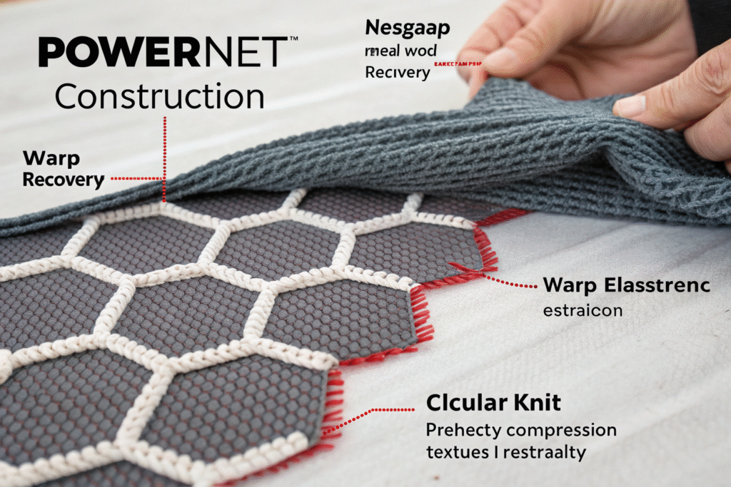 Powernet fabrics derive their compression properties from their unique construction combining rigid and elastic yarns in specific ratios. Standard powernet uses 15-25% elastane content with 75-85% nylon or polyamide, creating two-way stretch with firm recovery. Super powernet typically contains 25-35% elastane with higher denier yarns, providing three or four-way stretch with maximum compression. Micro powernet utilizes finer yarns with 10-20% elastane, offering lighter compression with enhanced comfort.