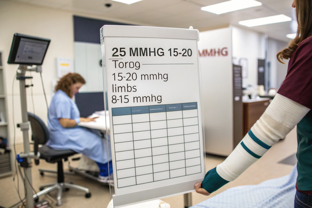 - Lateral Areas: 20-25 mmHg, waist cinching, nerve protection