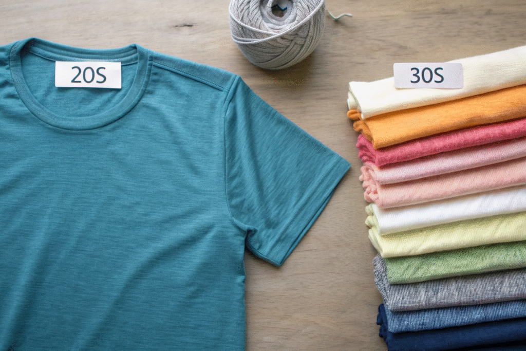 The yarn count system can be confusing: in the English cotton count system, a 20s yarn is thicker than a 30s yarn. For single jersey T-shirts, we've found that yarn counts between 20s and 30s provide the best balance of opacity and comfort. Going below 20s creates overly heavy, stiff fabric, while going above 30s significantly increases transparency unless compensated with very high stitch density.