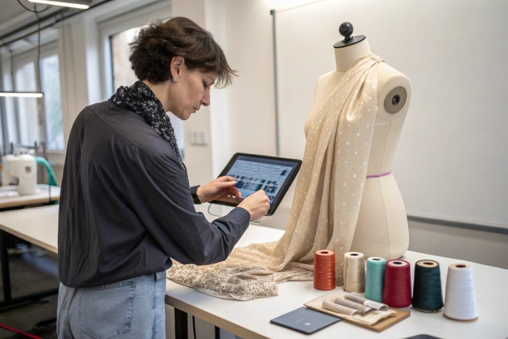 Yes. AI improves accuracy in fabric prototyping by simulating weave structure, texture, and drape digitally. These simulations use real fiber physics, helping brands preview how a fabric will behave before it’s made.