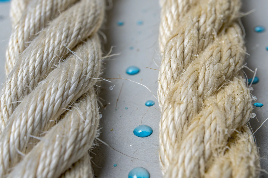 While Nylon is hydrophobic and doesn't rot like cotton, it has its own shipping problem: Yellowing and Degradation. Nylon is sensitive to Nitrogen Oxides (NOx) and Phenolic Yellowing. These are gasses present in tiny amounts in the air, especially around industrial ports.