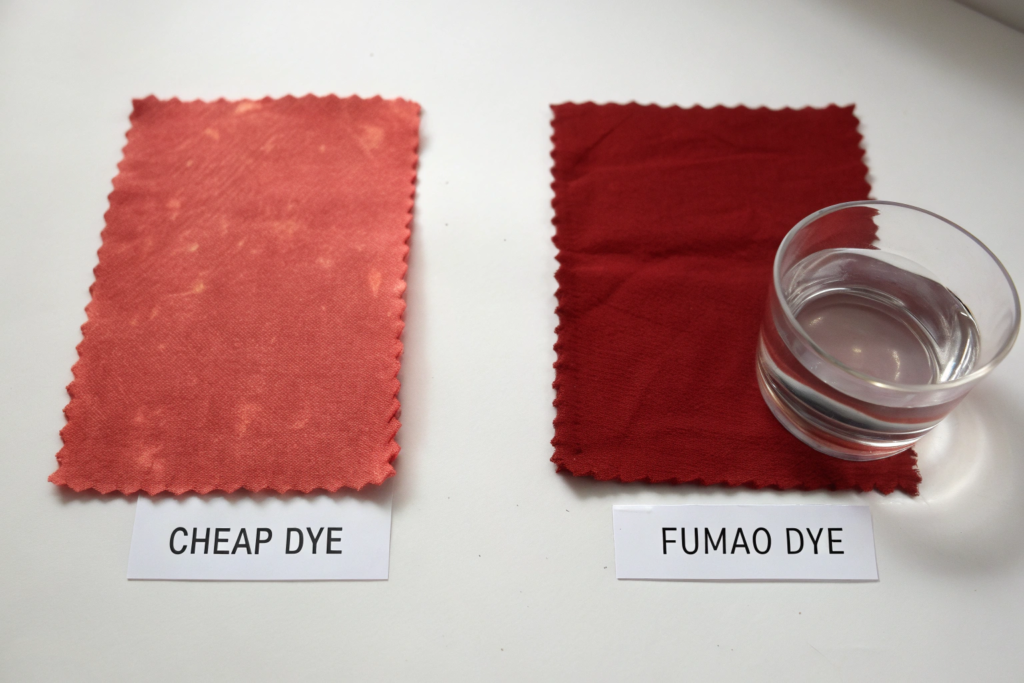 Cheap dye houses use Low-Cost Reactive Dyes and, more importantly, they skimp on the Washing-Off process. After dyeing cotton, the fabric is covered in Unfixed Dye (dye molecules that didn't bond to the fiber). A proper dye house will run the fabric through 6-8 wash boxes with hot water and soaping agents to scrub off all that loose dye.
