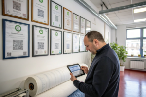 Each roll is QR-tagged. Our system logs fabric batch ID, dye time, machine number, shade standard, and post-dye test results. Buyers can scan and verify from anywhere.