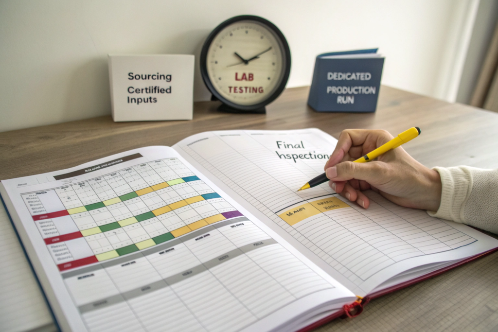 The golden rule is: Plan backwards from your needed delivery date, and add a certification buffer. If your normal sourcing timeline for fabric is 8 weeks, make it 10-12 weeks for certified fabric. This buffer accounts for: