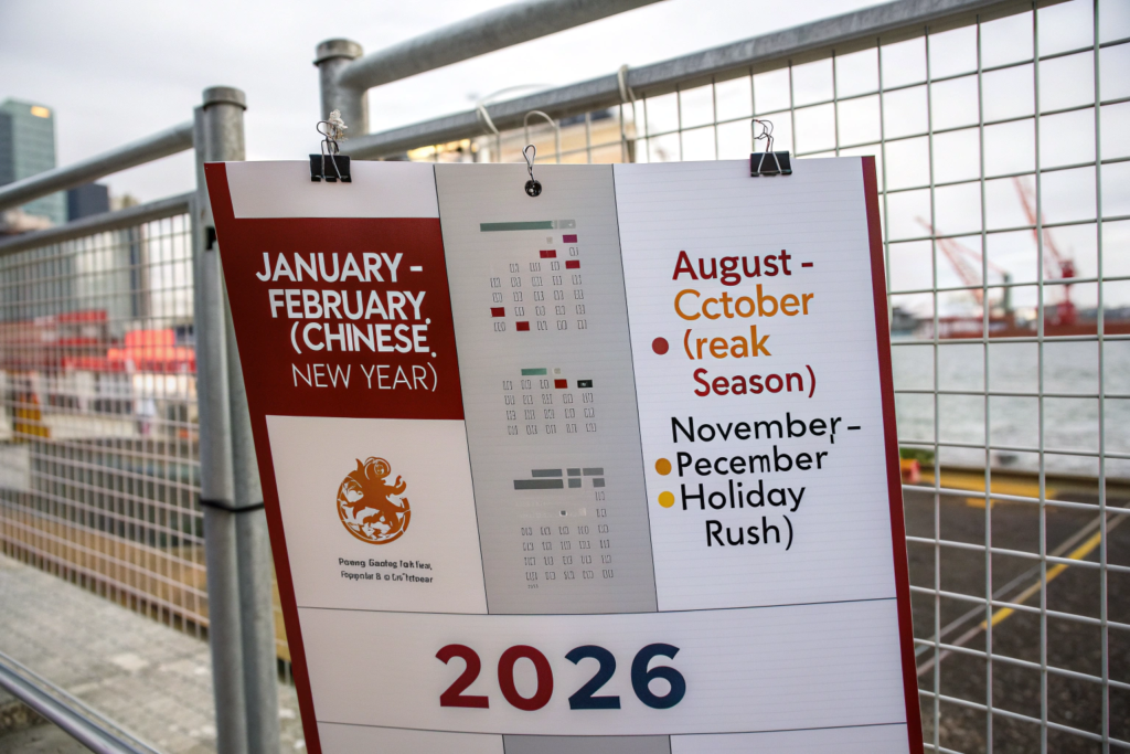 If you ship at the wrong time, you can easily double your expected transit time. The global supply chain has predictable “heart attack” periods. Shipping is seasonal, and in 2026, this seasonality is sharper than ever due to concentrated demand around key shopping events and manufacturing cycles. The pre-Chinese New Year rush is the classic example, but there are others that catch importers off guard.