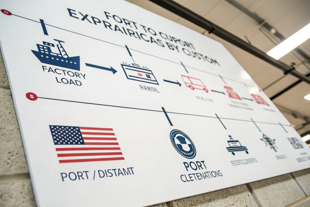 2. Export Customs Declaration (1-2 days): Your forwarder submits the manifest. This is usually smooth but requires perfect documentation (Commercial Invoice, Packing List, etc.).