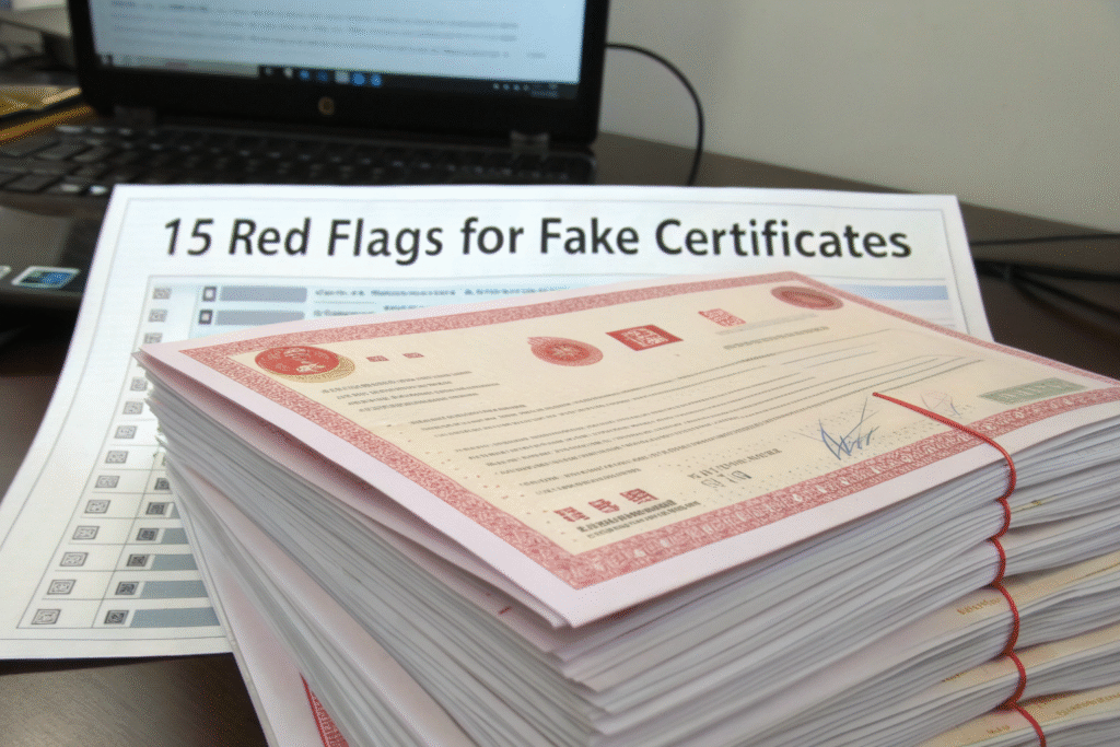 Fake certificates often contain subtle errors and inconsistencies that become obvious once you know what to look for. The most common red flags include formatting inconsistencies, missing information, and verification failures. We've compiled a checklist of 15 specific red flags that have helped our clients avoid problematic suppliers.