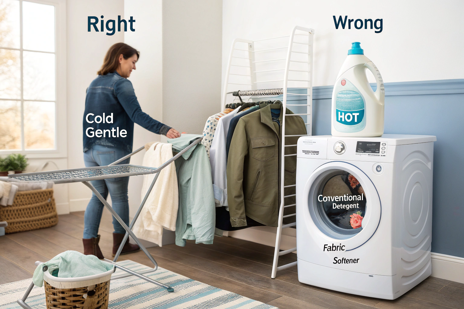 The most frequent mistakes are using fabric softener, overdrying with high heat, and storing garments improperly (crumpled in a plastic bag). Troubleshooting starts with diagnosing the symptom: