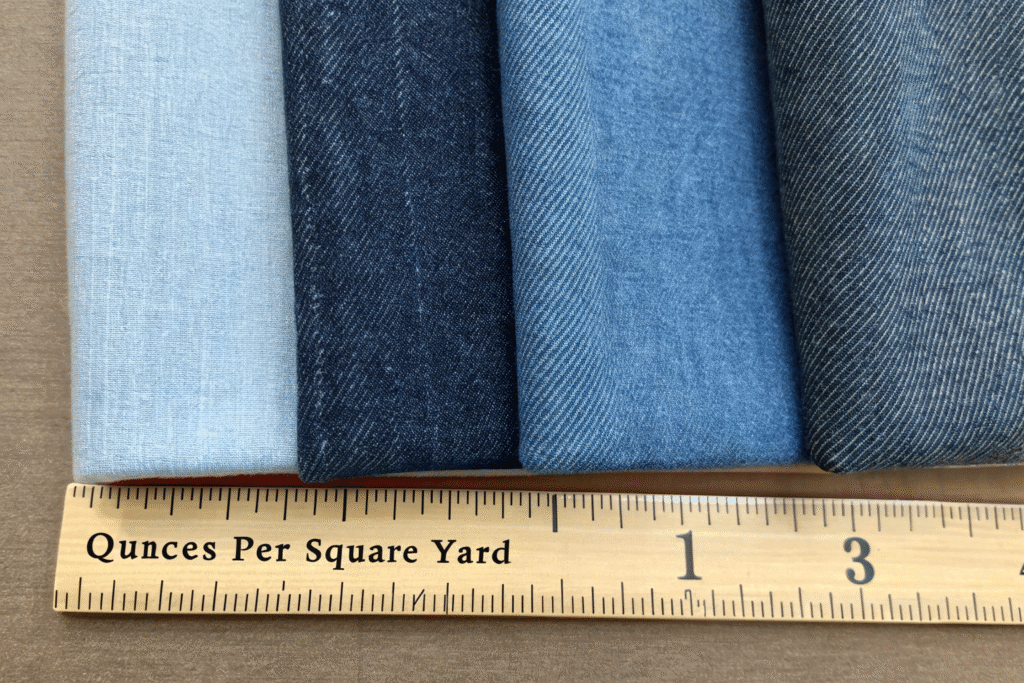 Denim weight measures thickness and density. It is calculated in ounces per square yard. This measurement determines how the fabric feels and performs. Heavier denim has more tightly packed yarns. Lighter denim uses fewer yarns for better airflow.