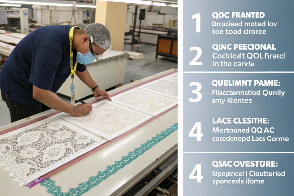 A robust QC protocol for lace must cover four stages: 1. Greige Goods Inspection (checking the undyed lace for knitting defects), 2. Post-Dyeing/Finishing Inspection (checking for color evenness, stains, and hand-feel), 3. Final Random Inspection (FRI) against your AQL standard, and 4. Pre-Shipment Verification of packaging and documentation. Missing any one stage is an invitation for disaster.