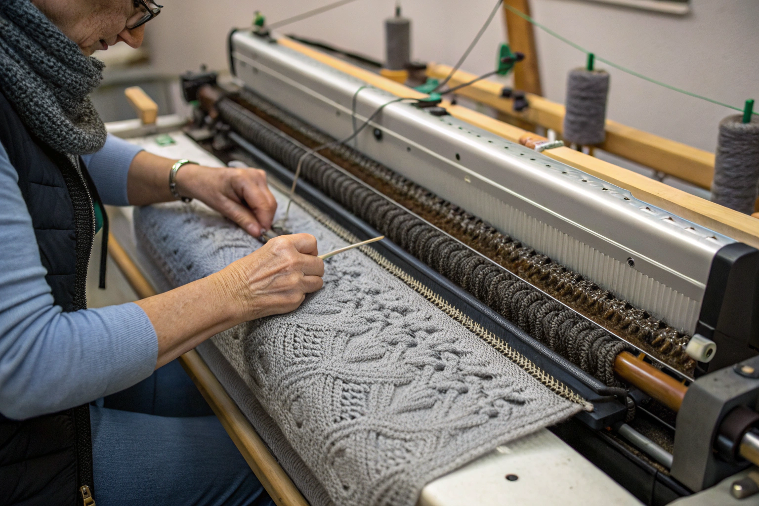 Finding a 21G Intarsia machine is like finding a vintage Ferrari. They exist but they are owned by collectors and specialists. The needles are so fine they break if you look at them wrong. The setup takes a master technician.
