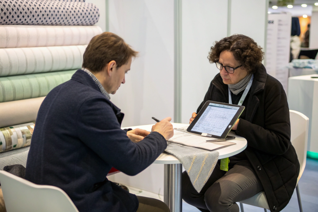 In 2023, a Canadian activewear buyer came to our booth at Intertextile. She told me she had pre-screened 47 exhibitors down to 12 based on three criteria: their listed certifications (GOTS, OEKO-TEX, etc.), their presence on Alibaba with transaction history, and their response time to her pre-show email inquiries. She sent each of those 12 a simple email asking about their minimum order quantities and lead times for recycled polyester interlock. She eliminated anyone who took more than 48 hours to respond or gave vague answers. That's preparation. By the time she got to our booth, she already knew we had passed her initial test.