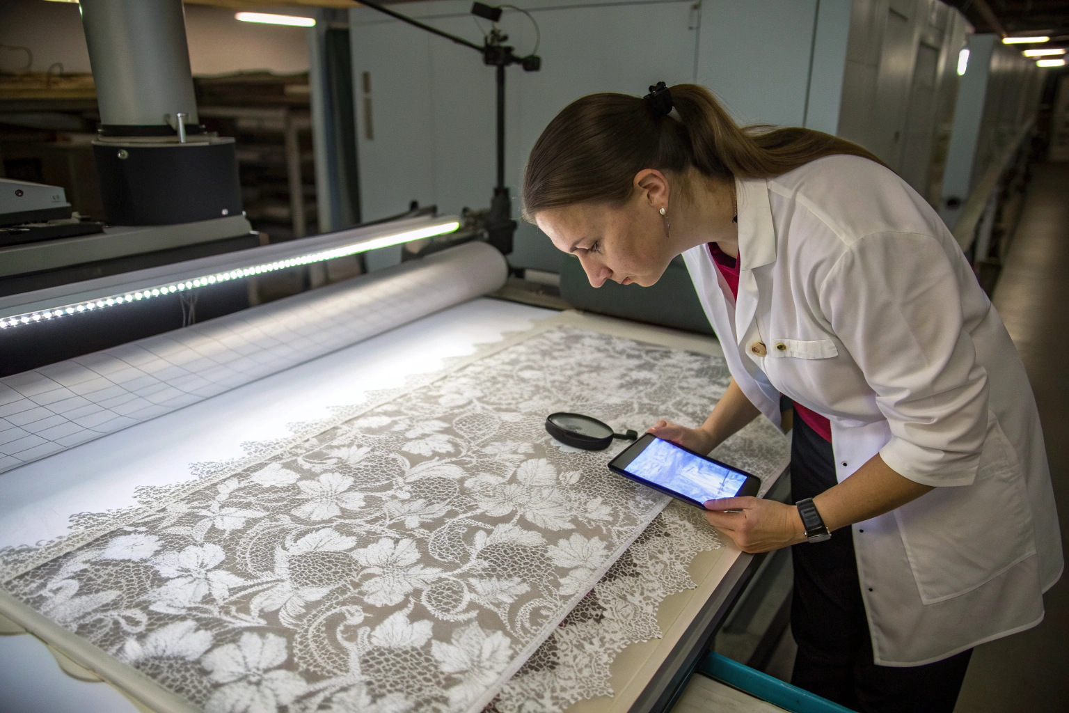 Managing quality control for intricate lace requires a specialized, multi-stage protocol that moves beyond simple visual checks to include tension analysis, pattern alignment verification, and material-specific stress tests. The core of effective QC lies in implementing a “3-Stage Verification” process: Pre-Production (validating the digital design and base yarns), In-Process (monitoring the embroidery or weaving in real-time), and Pre-Shipment (conducting a meticulous, backlit inspection of every meter). Success depends on partnering with suppliers who have the technical infrastructure and cultural commitment to treat intricate lace as a precision product, not a commodity.
