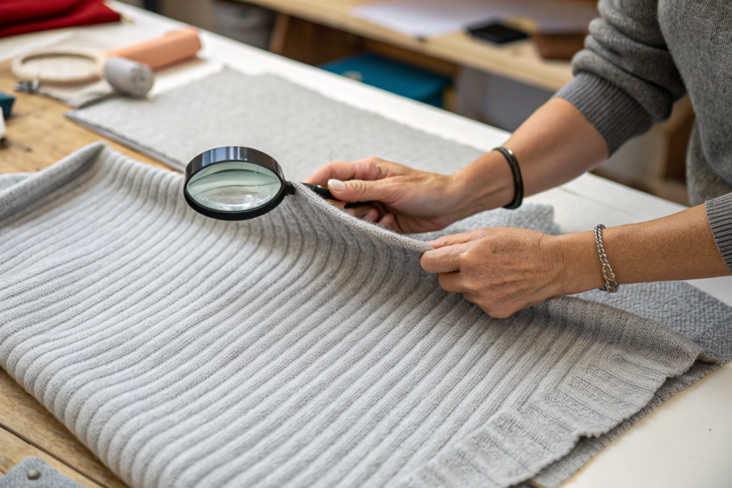 First, the handfeel. Does it match what you expected? For knitted fabrics, this is about softness, drape, and stretch. If you ordered a 180gsm single jersey for a summer t-shirt, it should feel light and breathable. If it feels heavy or stiff, something’s off.