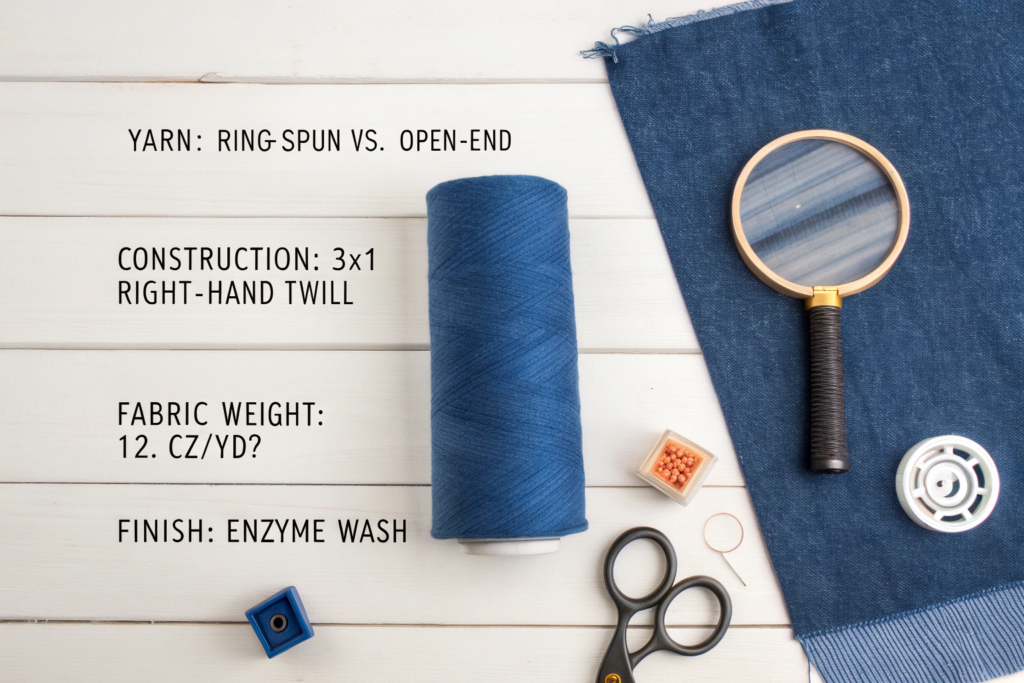 Before you contact a single supplier, you need to speak the language of denim. Walking into a sourcing conversation saying "I want blue jeans fabric" will immediately mark you as an amateur and open you up to being misled. Your specifications are your blueprint and your shield. They ensure you get what you pay for and allow for accurate comparison between suppliers. The core specs break down into four categories: composition and weight, construction and look, physical performance, and finish.