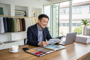 She will connect you with our automotive textiles division. We will pull the yarn specification sheets. We will review your PFMEA requirements. We will develop the lab dips. We will build the validation timeline that accounts for the 6-month qualification cycle and the CNY shutdown.