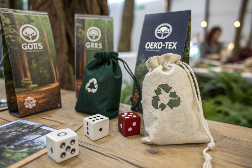 What sustainable fabric options exist for dice bags?