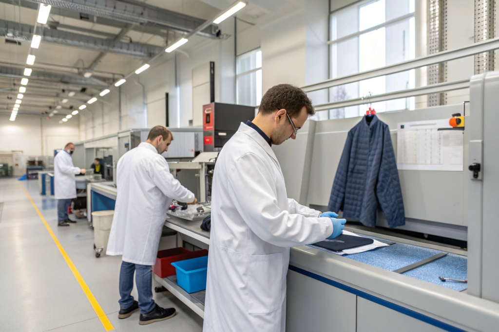 Wash testing per AATCC 135 or ISO 6330: Standard home laundering doesn't simulate industrial conditions. Specify industrial wash cycles (hotter, longer, more aggressive).