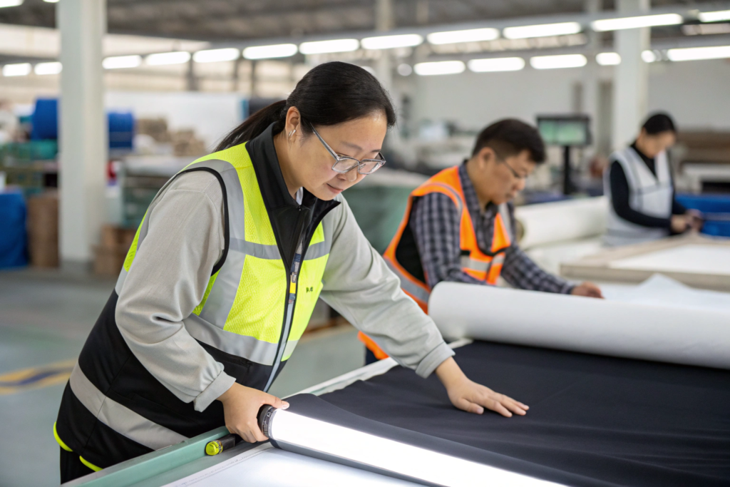 I always tell our partners: "Don't just trust us, verify us." That's why we built our own CNAS-accredited lab right inside our facility. We don't outsource our testing. When we produce a run of 600D polyester for your bench covers, we run it through our own testing center. We check for tear strength using the Elmendorf tear test, we check colorfastness to light and rubbing (crocking), and we check the waterproof rating with a hydrostatic head tester. We have a 5-step QC process: incoming fiber inspection, in-production weaving checks, first-piece inspection after dyeing, final fabric inspection (using a 4-point system), and pre-shipment random sampling. We caught a major issue for a UK sportswear brand in early 2023: the shrinkage rate on a batch of their custom-dyed fabric was 1% higher than their spec. Because we flagged it before cutting, we saved them 30 days of rework on the production line.