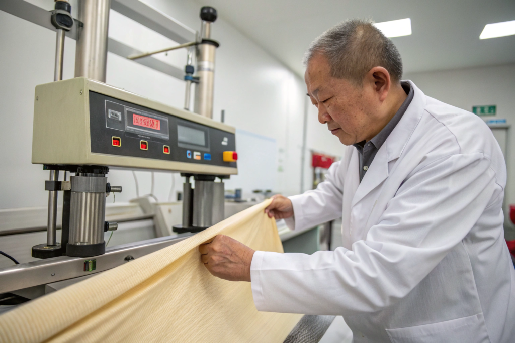 We also test opacity under 100% stretch. A fabric that is opaque at rest may become translucent when stretched over a knee or hip. We stretch the fabric to 80% elongation and measure again. If transmission increases by more than 2%, we reject the batch.