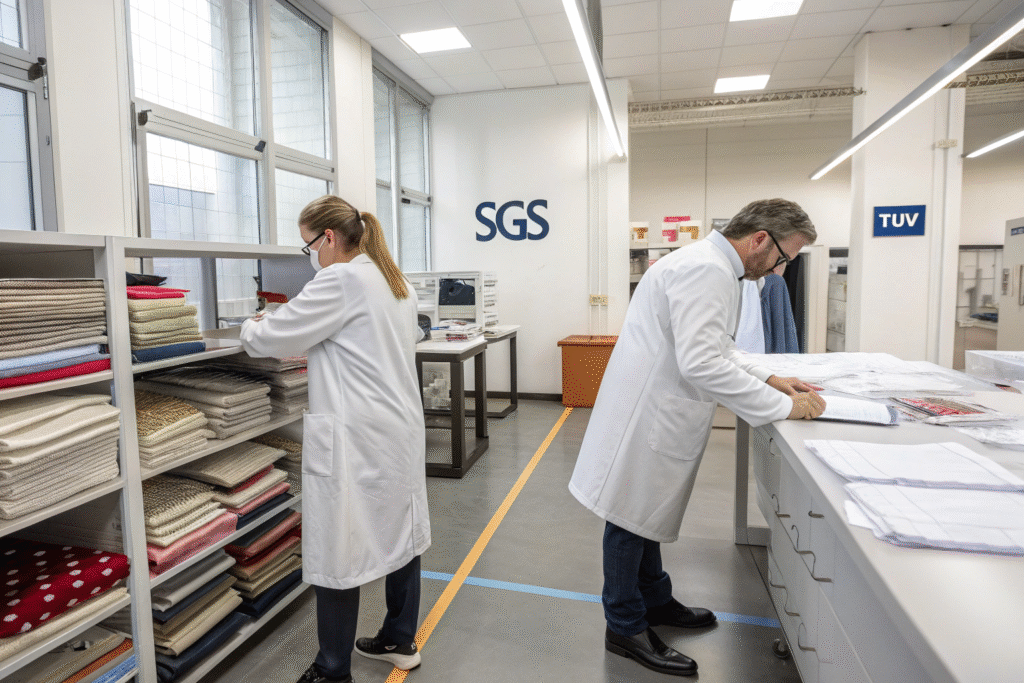The safe route is always to use ISO-accredited labs. These labs follow strict systems and are recognized worldwide. Names like SGS, Bureau Veritas, and TÜV are trusted everywhere. There are also textile-focused labs like Testex and Intertek, which specialize in fabric testing.