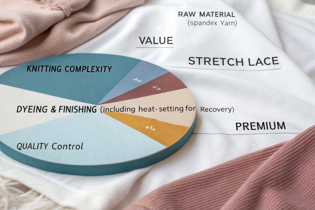 - Spandex Cost: High-quality, consistent elastane yarn (like Lycra® or Creora®) is a significant cost driver. Cheaper lace often uses generic, lower-recovery spandex.