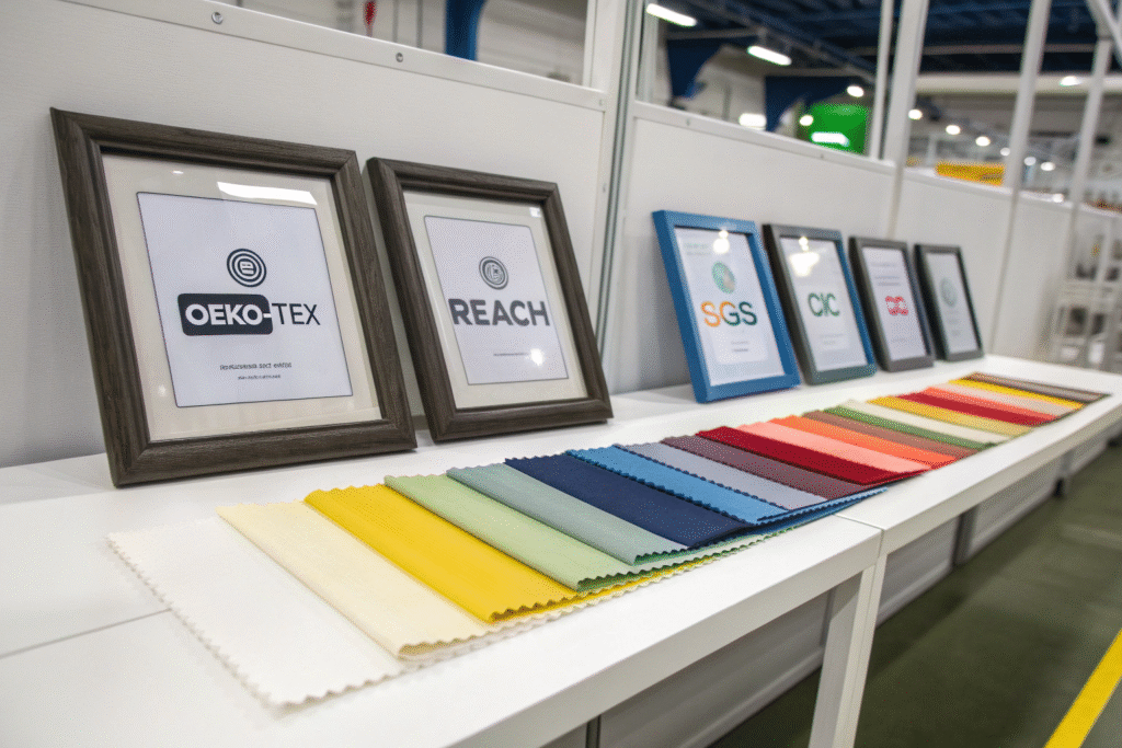 Look for OEKO-TEX Standard 100, REACH compliance, and SGS reports validating UV reaction, durability, and skin contact safety.
