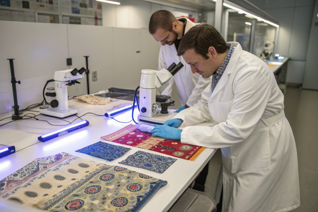 Key tests include UV degradation, water repellency, and colorfastness. Learn more from AATCC testing methods and OEKO-TEX certification.