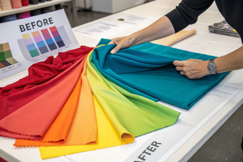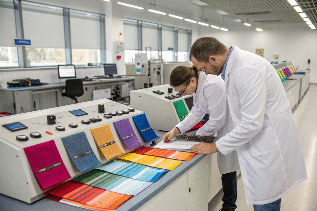 The color shift temperature range is critical. For promotional apparel, fabrics that change around 30–35°C work best because they react to body heat. You should also check how fast the change occurs and how quickly it returns to the base color. I often advise clients to request lab test videos or visit a supplier’s testing facility like Intertek or SGS to verify performance. Durability after washing is another factor—some cheap coatings lose effect after 3 washes.