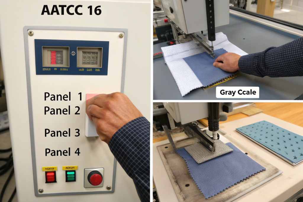 AATCC 16 isn't one test—it's a family of test methods with different options. The most common is AATCC 16.3, which uses a xenon arc lamp to simulate sunlight. Here's how we actually do it in our lab.