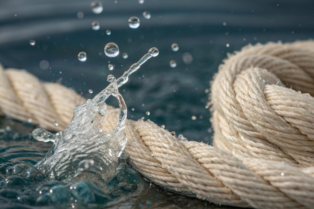 But tension release isn't the only factor. There's also swelling. Natural fibers like cotton absorb water and swell radially (get thicker). This swelling forces the yarns to bend more around each other in the weave, pulling the whole structure tighter and shorter.
