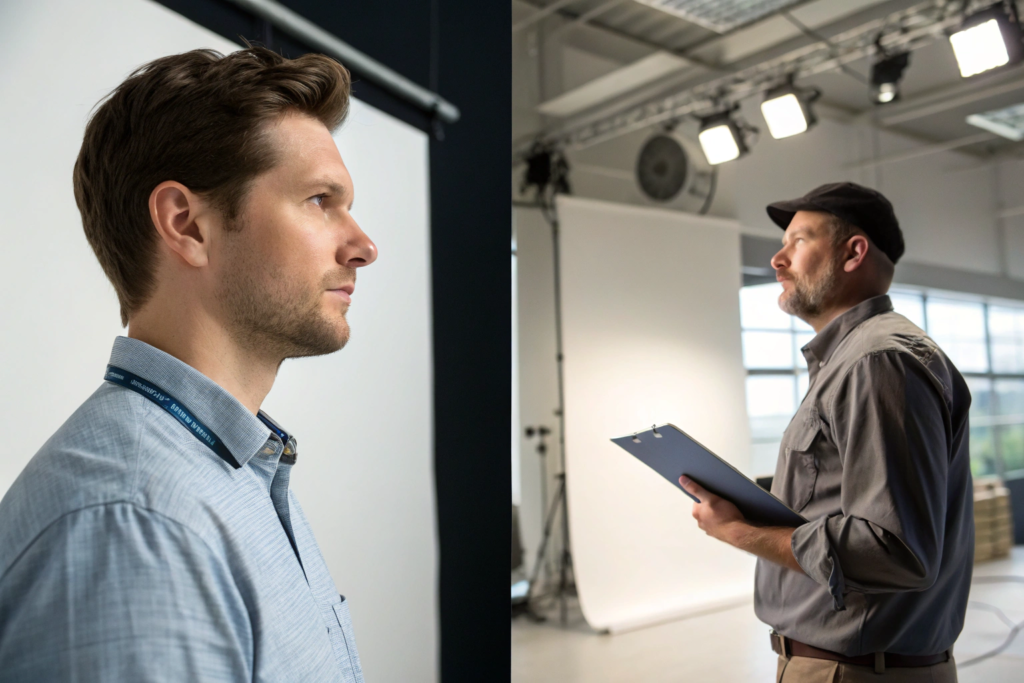 Look at the profile photos. Are they real photos or stock images? A salesperson with a perfectly lit, studio-quality photo that looks like a stock image might not be real. A production manager with no photo at all might not exist.