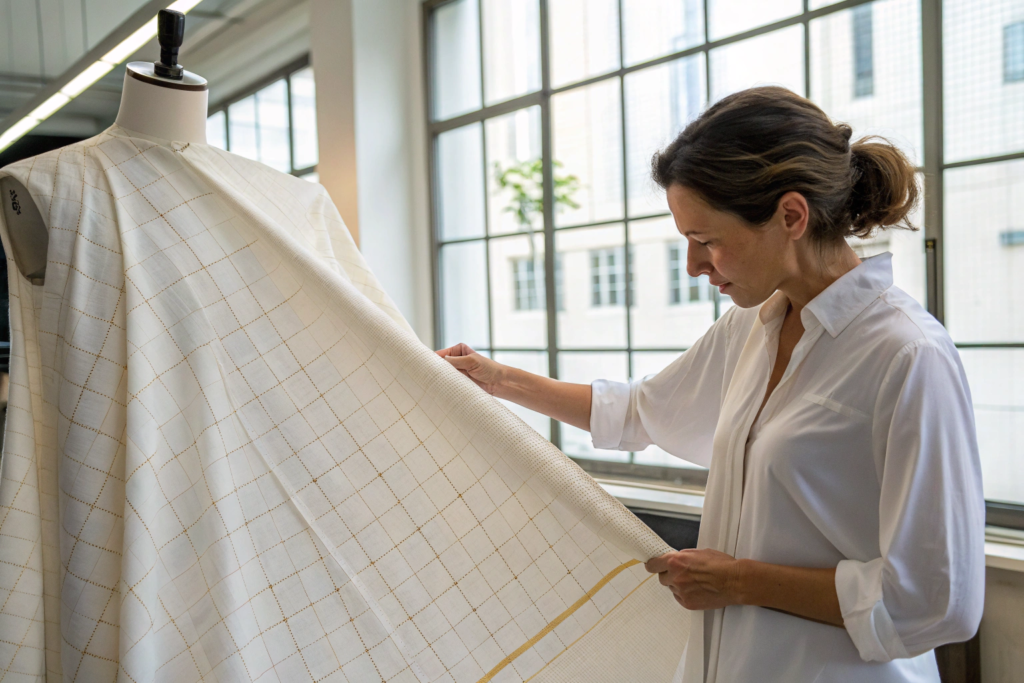 The surface inspection under good light reveals the structure. A bamboo knit shows the characteristic loop structure—tiny V's or interlocking rings depending on the knit type. A bamboo woven shows the grid pattern of warp and weft yarns crossing at right angles. If you have a magnifying glass or even a smartphone camera with zoom, the difference becomes obvious.