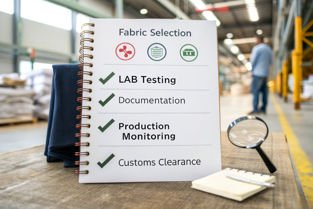 Design & Development Fabric selection, prototyping 3-4 weeks Initial compliance assessment, lab dip testing