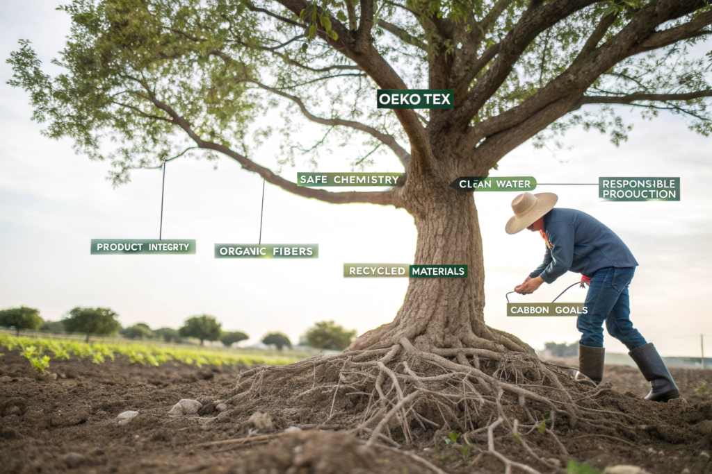 - Start with the Fiber: Source raw materials with recognized credentials (BCI Cotton, GOTS Organic Cotton, GRS Recycled Polyester).