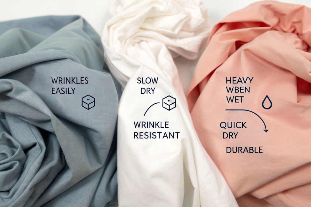 • Water & Energy in Care: Wrinkle-resistant blends require less ironing (saving energy at home). Quick-dry blends may encourage line-drying over machine drying.