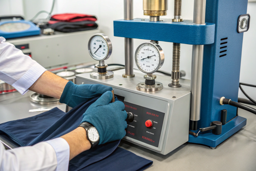 The gold standard is the MST MKIV or similar compression testing devices that measure pressure in millimeters of mercury (mmHg). Medical compression typically requires 15-20 mmHg for mild compression, 20-30 for moderate, and 30-40 for firm. Athletic compression usually targets 15-25 mmHg depending on application. Any serious compression supplier should have this equipment and provide test reports.
