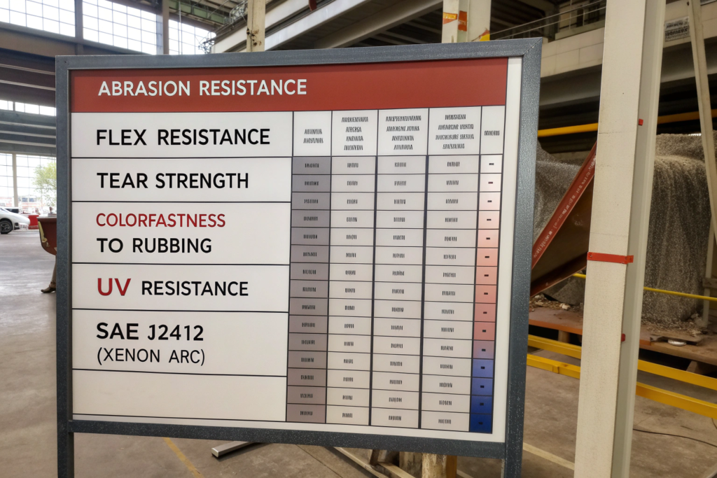 | UV resistance | Store window display | SAE J2412 (xenon arc) | Grade 4 minimum at 225 kJ |
