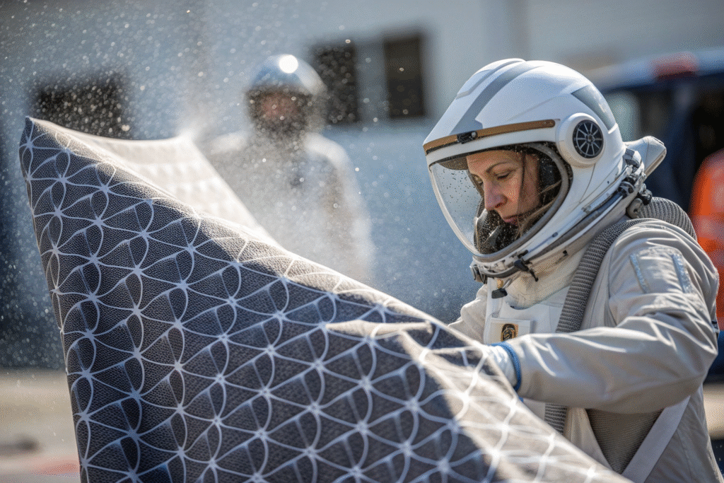 A team at the University of Delaware is building a new type of suit shell. It combines special fibers with a liquid that hardens under pressure. This design protects against impacts, resists damage, and makes it harder for dust to stay on the surface. It is one of the first fabrics made for both strength and dust control at the same time.