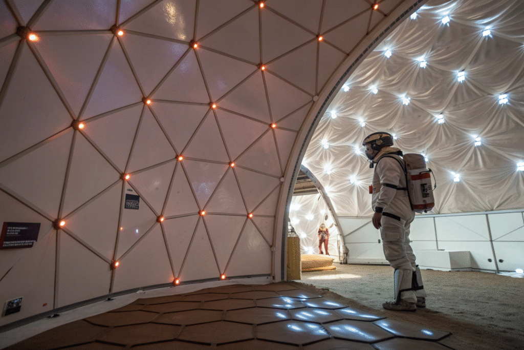 A fabric wall with alternating layers—polyethylene, aramid, natural fiber, and reflective foil—could act like a flexible radiation shield. This modularity would allow habitats to be deployed quickly and repaired easily. Studies in radiation-hardened composites show that even thin flexible sheets can perform comparably to rigid blocks, making this approach highly practical for Mars.