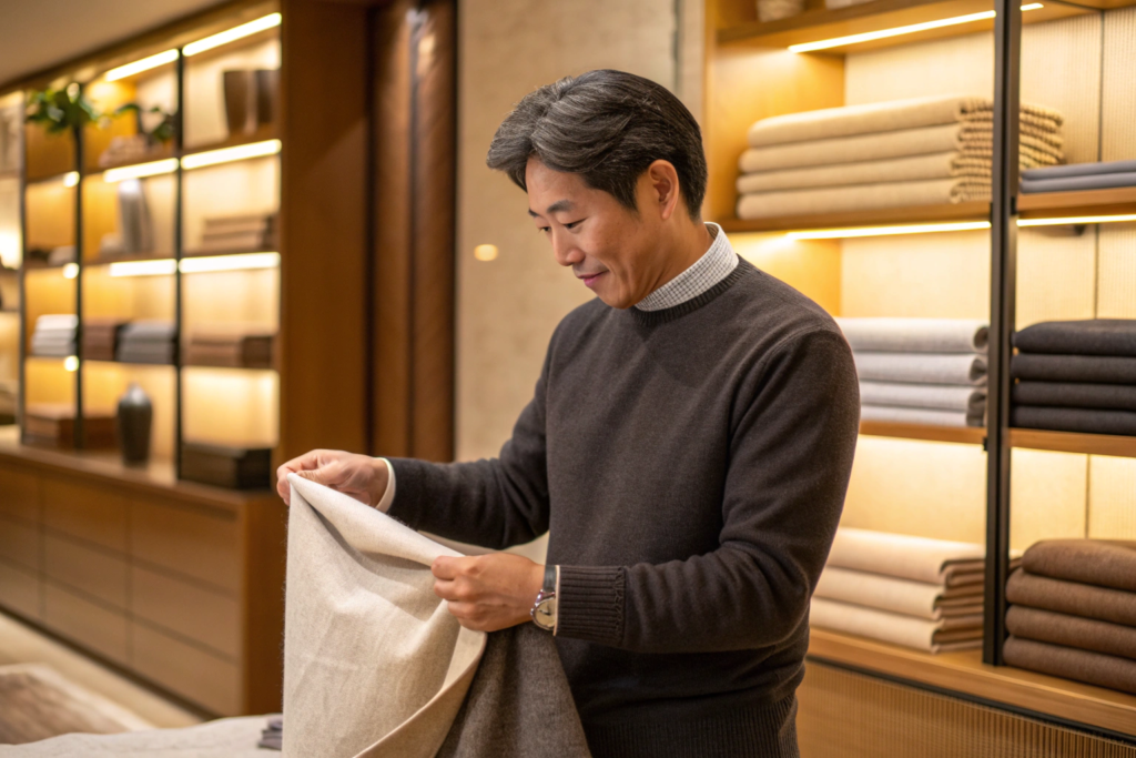 The best options for a capsule wardrobe are, in my opinion, Merino wool and high-quality Cashmere. Merino is the workhorse. It's fine, soft, breathable, and naturally odor-resistant. It's perfect for base layers, lightweight sweaters, and even travel clothing. Cashmere is the luxury piece. It's incredibly soft, lightweight, and warm. But it requires more care. The key with both is the fiber diameter, measured in microns. The lower the micron, the finer and softer the fiber. Superfine Merino is around 17.5-18.5 microns. Top-tier cashmere is under 15.5 microns. We source our wool and cashmere from trusted partners in Inner Mongolia and Australia, and we test every batch in our lab to ensure the micron count is consistent.