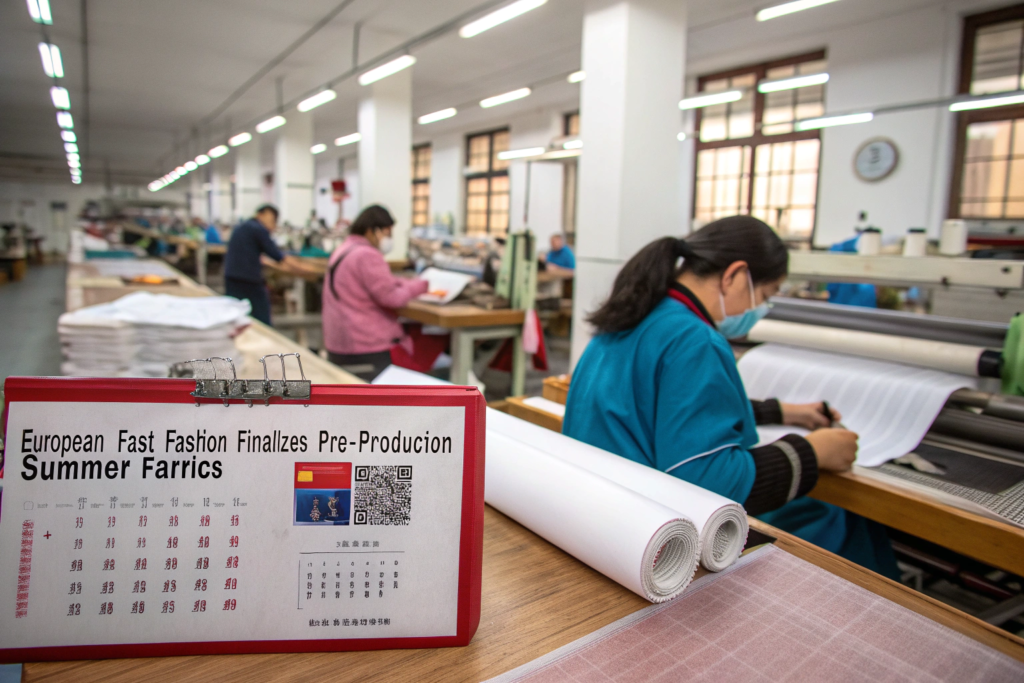 • April 2026: Fabric arrives at your garment factory. This allows 4-6 weeks for cutting, sewing, finishing, and quality control before shipment. Missing this fabric arrival date risks paying for expensive air freight or, worse, missing the summer season entirely.