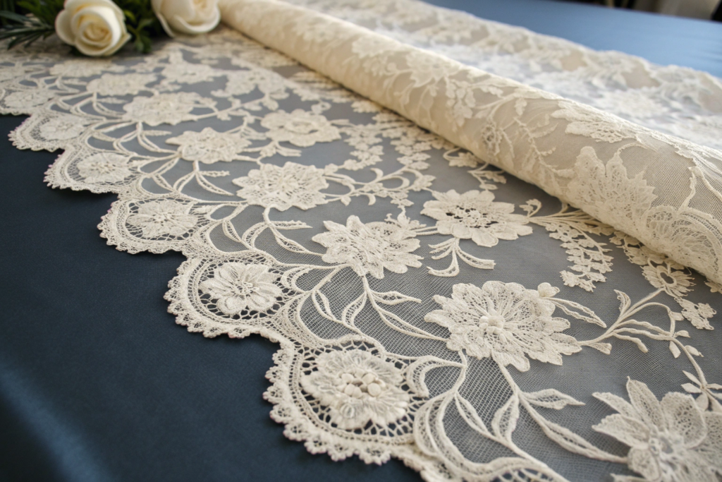 - Advantage of Embroidered Lace: It allows for incredibly detailed, dense, and multi-colored patterns that are hard to achieve on traditional looms. It’s highly customizable.