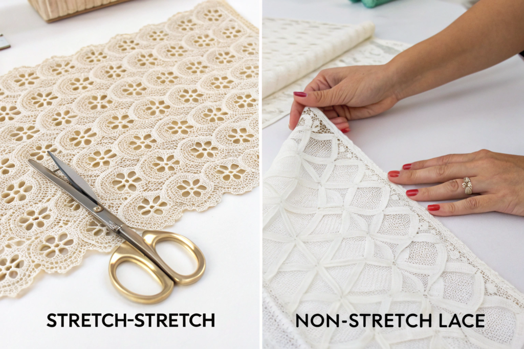 Guipure lace is defined by its dense, embroidered-like patterns where the motifs are connected by bars or braids, not a net background. This gives it a substantial, textured, and often three-dimensional feel. It’s non-stretch and offers superb opacity and structure. Pros: Unmatched visual impact, great for bold geometric or art deco patterns, provides structure and body, often looks more expensive than it is. Cons: Heavier, less flexible, can be itchy if not backed with a soft lining, generates more fabric waste during cutting, and may require special handling during sewing to prevent fraying.