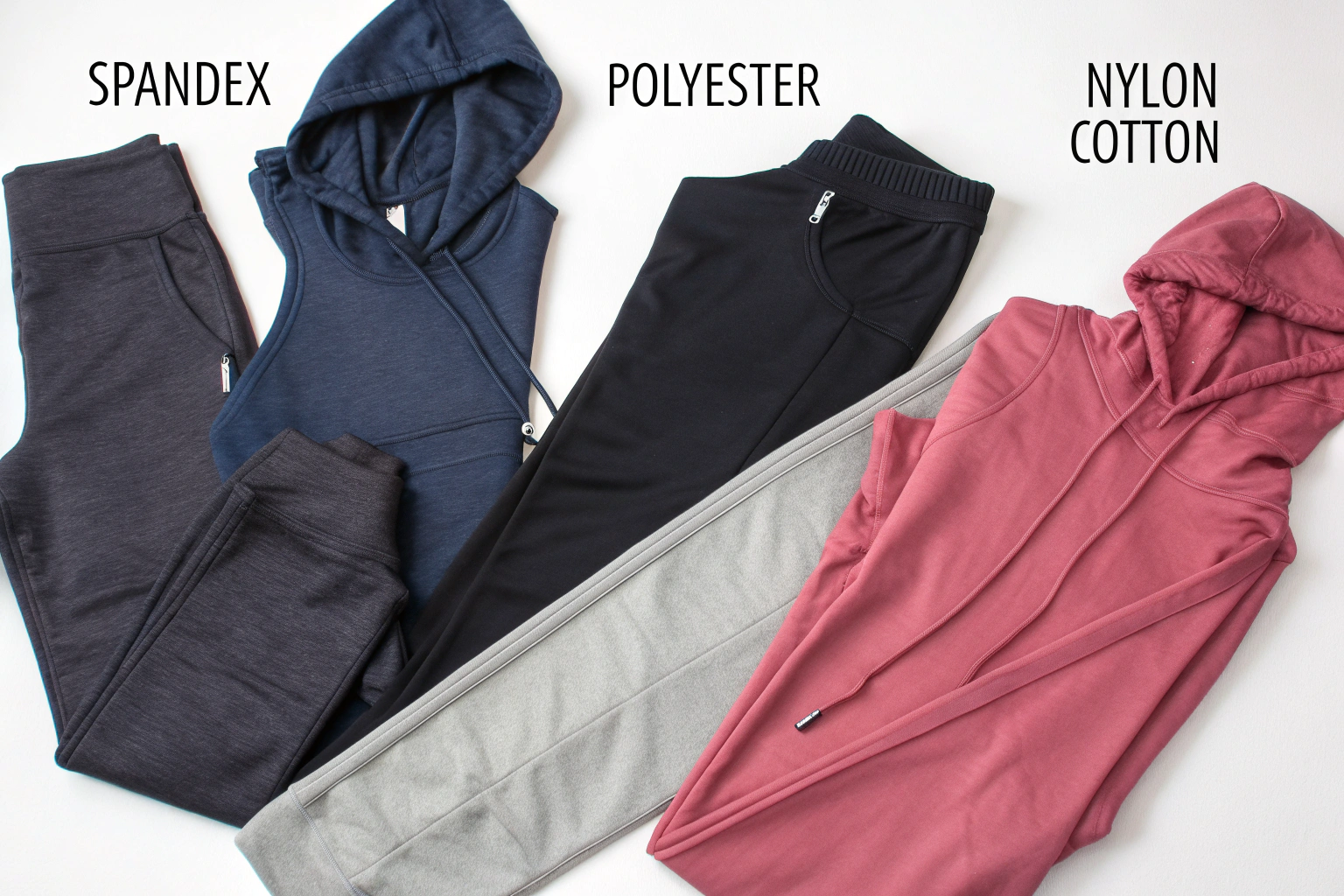 When you think of modern athleisure, you're likely thinking of polyester-spandex. This blend is the undisputed workhorse of the category, and for good reason. Polyester brings exceptional durability, excellent moisture-wicking capabilities, and quick-drying properties to the table. When combined with spandex (typically in ratios from 85/15 to 92/8), you get a fabric that is resilient, shape-retentive, and highly functional for sweat-inducing activities.
